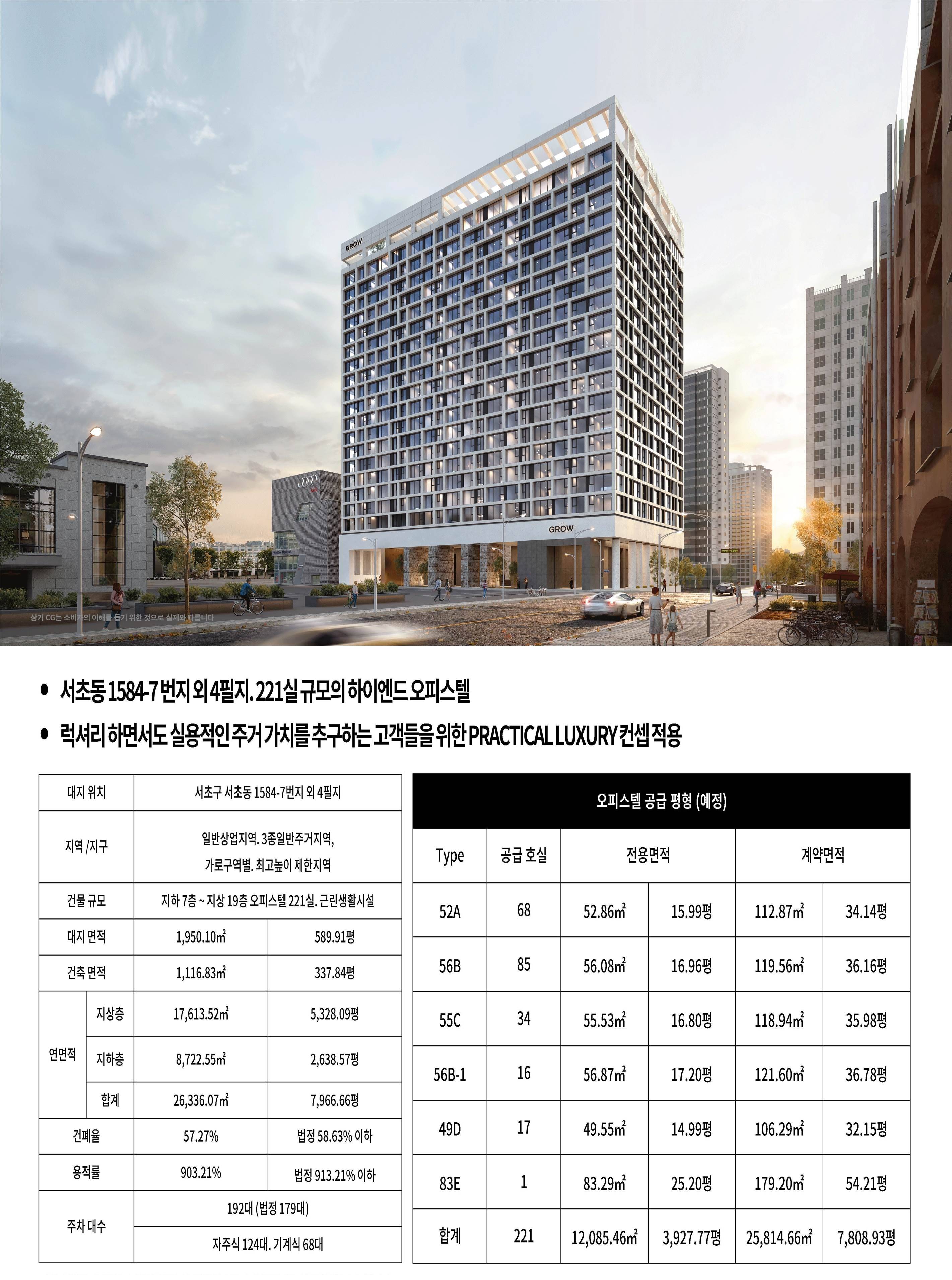 총 156실 규모의 하이엔드 오피스텔로 공급되어 강남 핵심 입지에서의 희소 가치와 주거 독립성을 모두 확보합니다.